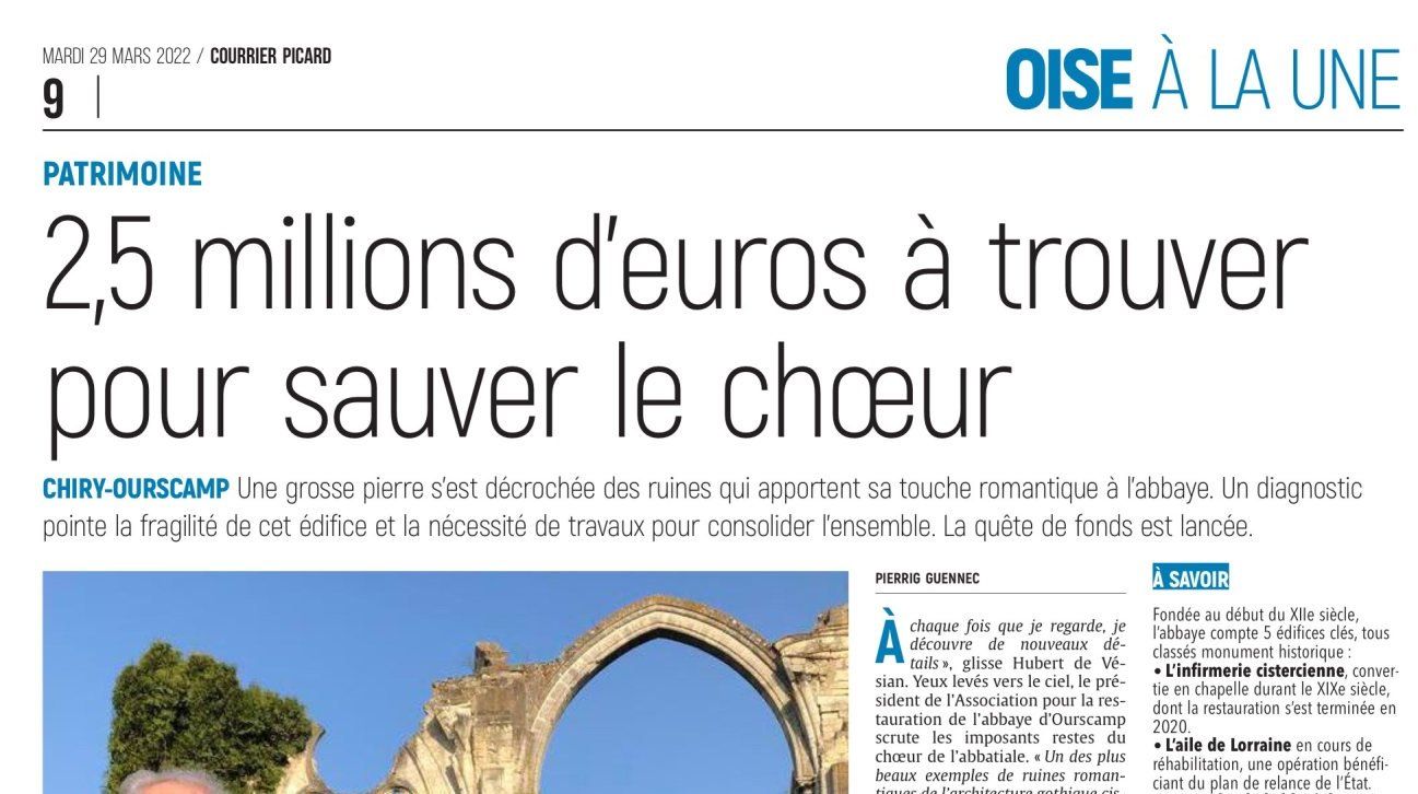 Le 29 mars dernier, le Courrier Picard a publié une article de deux pages, dont une de couverture, sur la sauvegarde et la restauration des ruines du chœur